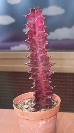 Family: Euphorbiaceae Origin: South Africa Una pianta simile ad un cactus colonnare, che cresce abbastanza rapidamente. Fa piccoli fiori rosso bruno. d |