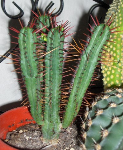 rosse molto decorative. Cresce rapidamente e fa molte "braccia". I fiori nascono sulla punta delle spine! Simile ad un cactus del deserto. |